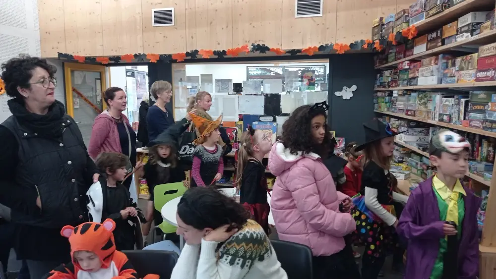 La bibliothèque-ludothèque de St Laurent a fêté Halloween en avance sur le calendrier : jeux, ateliers créatifs, coloriages, chasse aux trésors, déguisements, bonbons, livres, goûter, déco … tout était au rendez-vous. Et, comme chaque année, vous avez été nombreux à participer à cet aprés-midi ludique, festif et animé ! Merci !